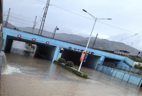 經(jīng)過現(xiàn)場察看,由于短時間降雨量太大,龍津河水位暴漲高于通道出口頂標高,河水倒灌至下穿通道導致交通中斷,下穿通道水泵房三臺水泵全部啟動抽水也無法滿足排水要求。公司防汛小組到達現(xiàn)場后,連夜組織人員拉好警戒線,設置警示標志,防止車輛進入下穿通道,并調(diào)度4輛應急車輛及時排水并清洗路面;同時,提前與鐵路部門、交警部門聯(lián)系,暫時封閉該段線路。經(jīng)過6小時的不斷抽水,路面已基本暢通,搶險過程未發(fā)生任何險情和人員傷亡。