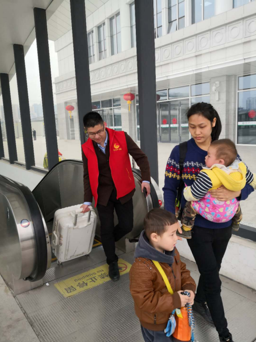 在火車站服務(wù)最需要幫助的有三種人:一種是殘疾人,一種是老年人,另外一種就是一手抱著小孩、一手提著行李的旅客。因新建火車站剛剛啟用,“請問進站口在哪兒?當(dāng)一位拿著大包小包還帶著孩子的旅客問到。“在這邊,我來幫你?!?/span>志愿者一邊指著路一邊接過旅客手中的包,一路將她送至進站口。